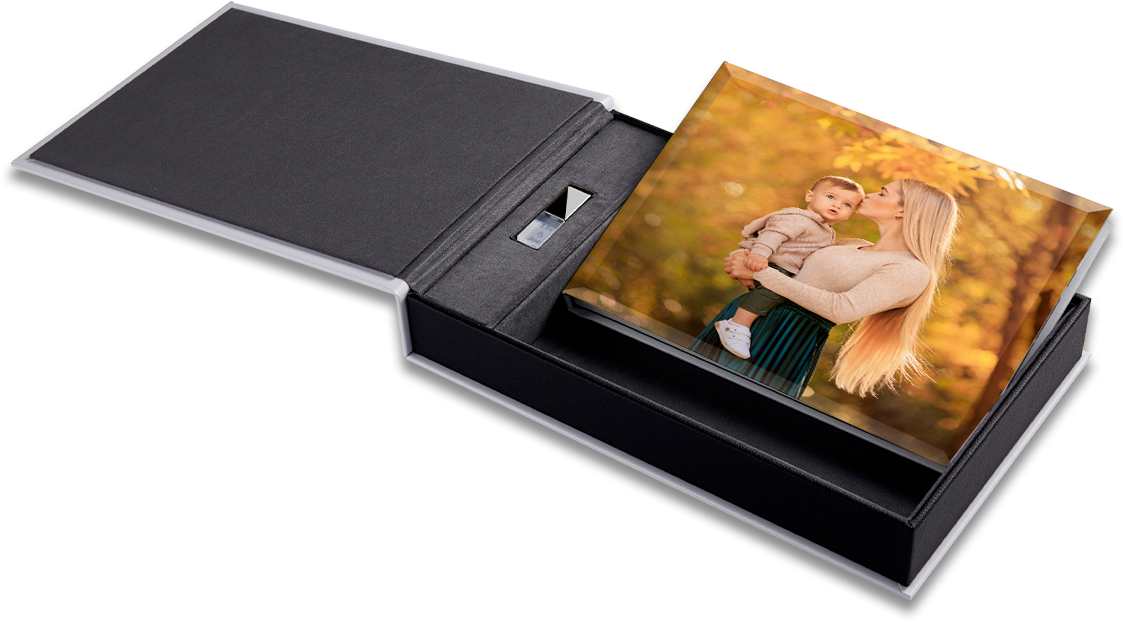 de alta resolución con retoque estándar. además cuenta con álbum de acrílico foto Cover y elegante caja con USB de cristal